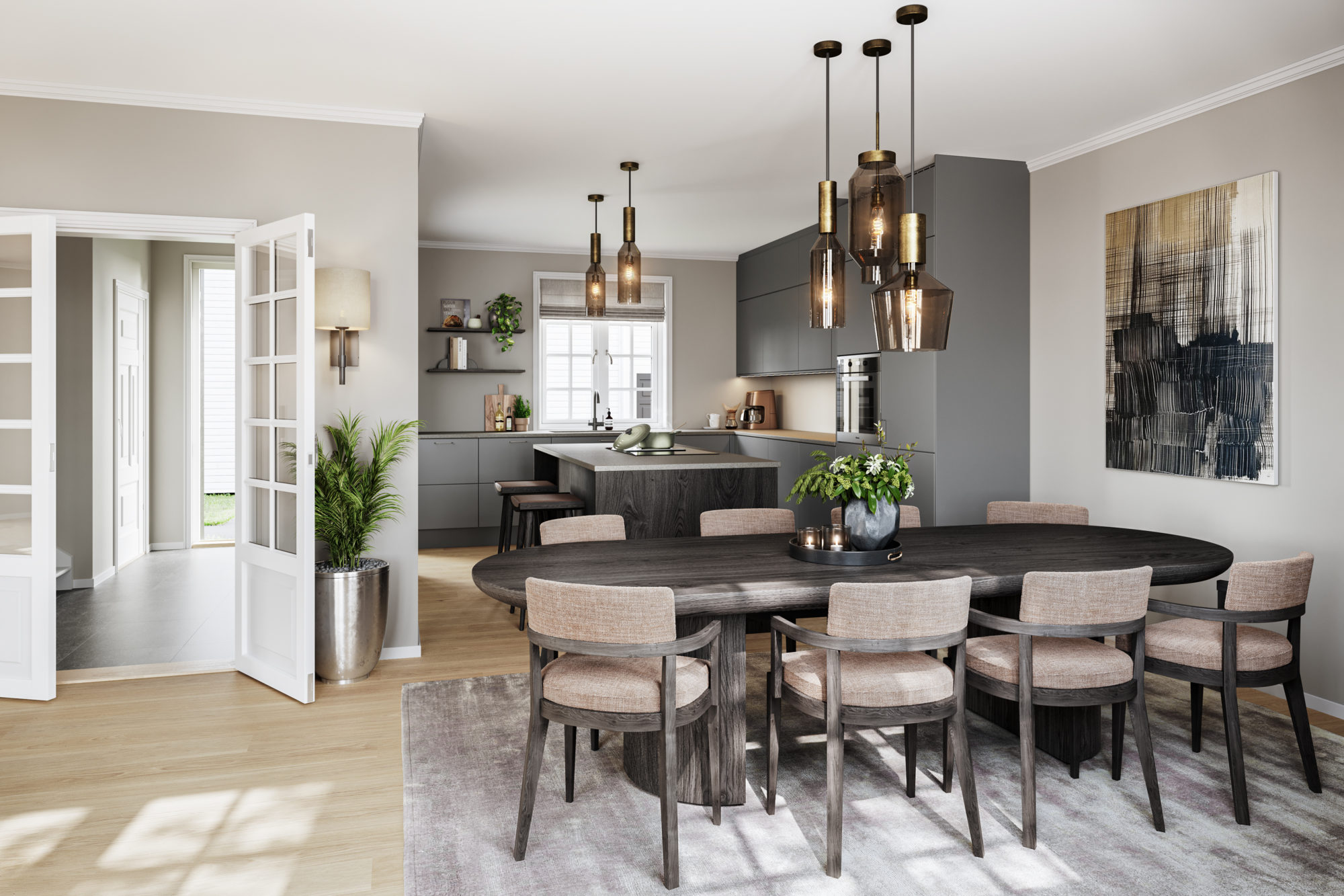 Velger du et Riis-hus, får du en bolig med særpreg og utsøkt kvalitet i alle detaljer. Det understrekes av en generøs takhøyde og god planløsning. Eksteriøret preges av en symmetrisk fasade, valmet tak, klassiske detaljer og en sober eleganse.